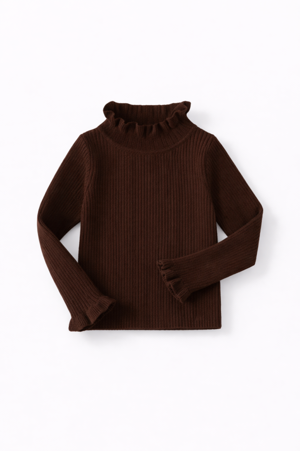 This charming ribbed sweater is the perfect blend of comfort and style for little girls. Made from soft, breathable fabric, it features a flattering ribbed knit pattern that gently hugs the body while keeping them warm. The cute ruffle detail along the edges adds a playful and feminine touch, while the cozy turtleneck provides extra warmth on cooler days. Ideal for layering or wearing on its own, this sweater is a versatile addition to your little one’s wardrobe. It pairs beautifully with jeans, skirts, or leggings and comes in a variety of colors to match every style.