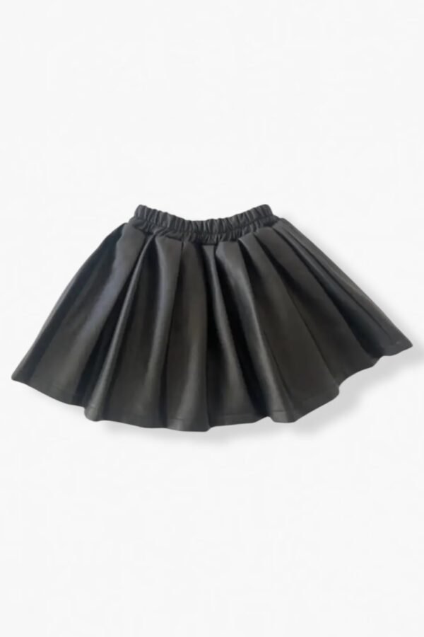 This trendy pleated skirt with faux leather detailing is the perfect combination of style and comfort for your little fashionista. Made from soft, breathable fabric with a chic faux leather waistband, this skirt adds a modern touch to any outfit. The pleats give it a classic, feminine silhouette, while the faux leather detail adds a touch of edge and sophistication. Perfect for both casual days and special occasions, it pairs easily with a variety of tops and shoes. Available in a range of sizes, this skirt is a stylish addition to any little girl’s wardrobe.
